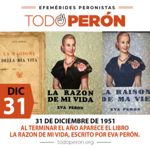A sus actividades usuales se había agregado, por lo demás, una nueva: desde su regreso de Europa alentaba la idea de volcar en un libro sus vivencias y pensamientos. Para ello, mantenía largas entrevistas con un escritor y periodista español, contratado para encargarse de la redacción del mismo. En esas reuniones, Eva volcaba todo cuanto deseaba expresar, con el fervor y la autenticidad que le eran característicos…”